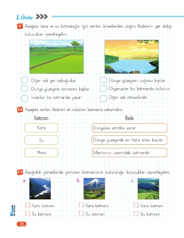 9 Aşağıda kara ve su katmanıyla ilgili verilen örneklerden doğru ifadelerin yer aldığı
