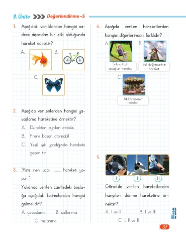 1. Aşağıdaki varlıklardan hangisi sa- 4. Aşağıda verilen hareketlerden