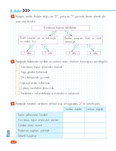 3 Aşağıdaki ifadelerden tehlikeli durumlara neden olanların kutucuğunu işaretleyelim.