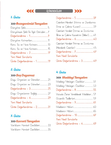 Varlıkların Hareket Özellikleri ................33 Ünite Değerlendirme - 4 ..................69