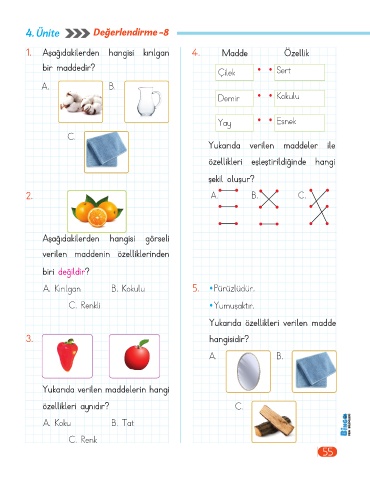 A. Kırılgan B. Kokulu 5. • Pürüzlüdür.