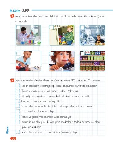 3 Aşağıdaki verilen ifadeler doğru ise ifadenin başına "D”, yanlış ise "Y” yazalım.