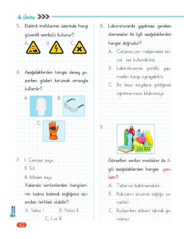 5. Elektrik trafolarının üzerinde hangi 8. Laboratuvarda yapılması gereken