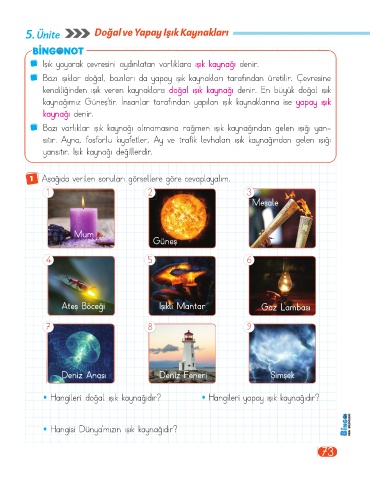 5. Ünite Doğal v e Y apay Işık K aynak lar ı