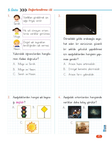 2. Aşağıdakilerden hangisi ışık kayna- 4. Aşağıdaki ortamlardan hangisinde