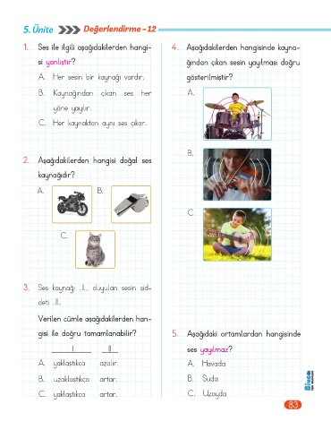 1. Ses ile ilgili aşağıdakilerden hangi- 4. Aşağıdakilerden hangisinde kayna-