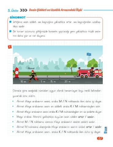• Ahmet M / N noktasına varınca itfaiye arabasının sesinin şiddeti azalır.