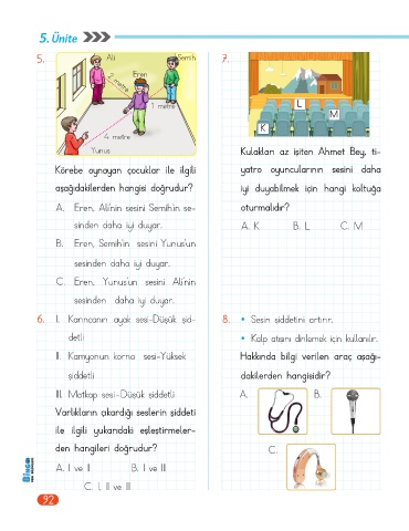 6. I. Karıncanın ayak sesi-Düşük şid- 8. • Sesin şiddetini artırır.