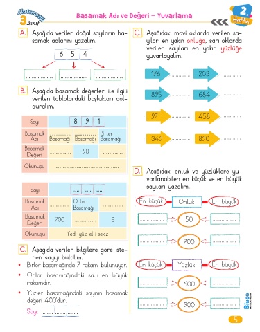 D. Aşağıdaki onluk ve yüzlüklere yu-