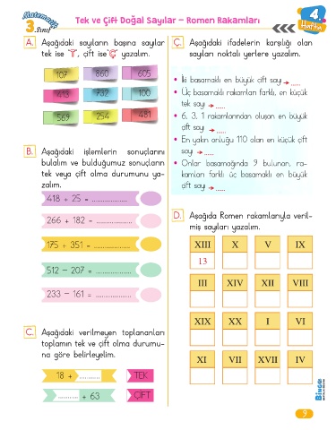 Tek ve Çift Doğal Sayılar - Romen Rakamları