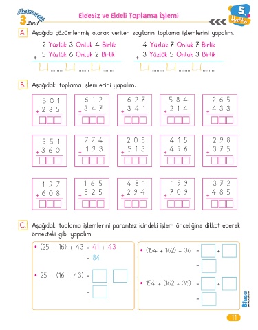 A. Aşağıda çözümlenmiş olarak verilen sayıların toplama işlemlerini yapalım.
