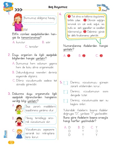 C. Dilimiz vücudumuzda sadece tat 5. Derimiz, vücudumuzu güneşin