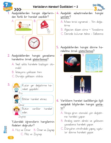 Hafta Varlıkların Hareket Özellikleri - 2 Fen Bilimleri Hafta