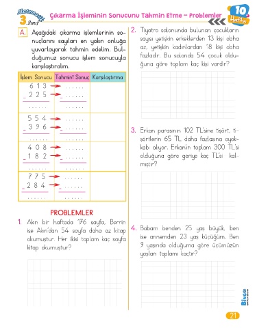Çıkarma İşleminin Sonucunu Tahmin Etme - Problemler