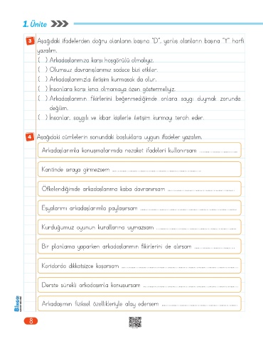 3 Aşağıdaki ifadelerden doğru olanların başına “D”, yanlış olanların başına “Y” harfi