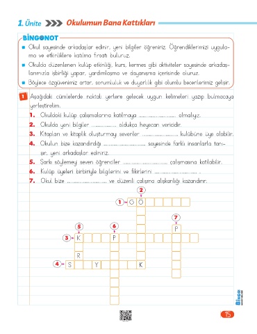1 Aşağıdaki cümlelerde noktalı yerlere gelecek uygun kelimeleri yazıp bulmacaya