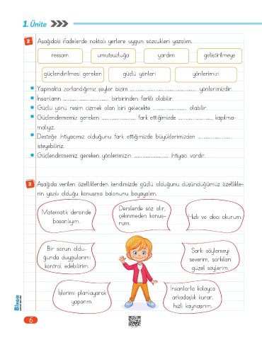2 Aşağıdaki ifadelerde noktalı yerlere uygun sözcükleri yazalım.
