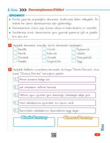2 Aşağıdaki ifadelerin numaralarını davranışlar olumluysa “Olumlu Davranış”, olum-