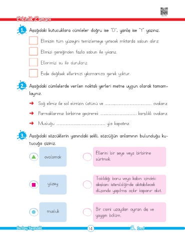 ➜ Sağ elimiz ile sol elimizin üstünü ve ................................................... ovalarız.