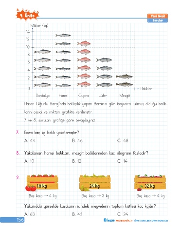 Yukarıdaki görselde kasaların içindeki meyvelerin toplam kütlesi kaç kg’dır?