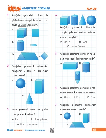 5. Ünite GEOMETRIK CISIMLER Test-38