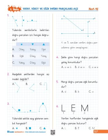 5. Ünite YATAY, DIKEY VE EĞIK DOĞRU PARÇALARI-AÇI Test-41