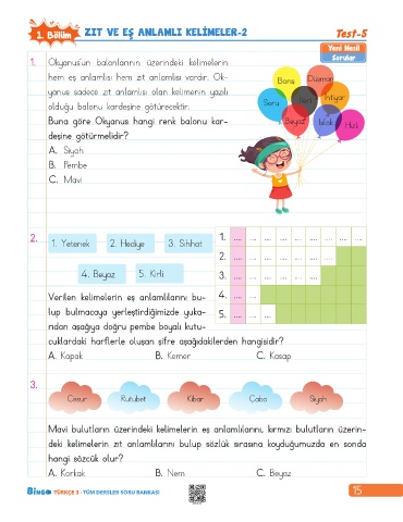 1. Bölüm ZIT VE EŞ ANLAMLI T est