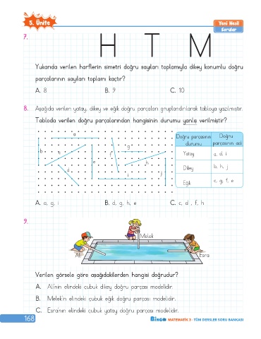 8. Aşağ›da verilen yatay, dikey ve eğik doğru parçaları grupland›rılarak tabloya yazılmıştır.