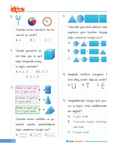 Yukarıdaki geometrik şekillerin köşe