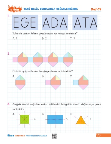 5. Ünite YENI NESIL SORULARLA DEĞERLENDIRME Test-44