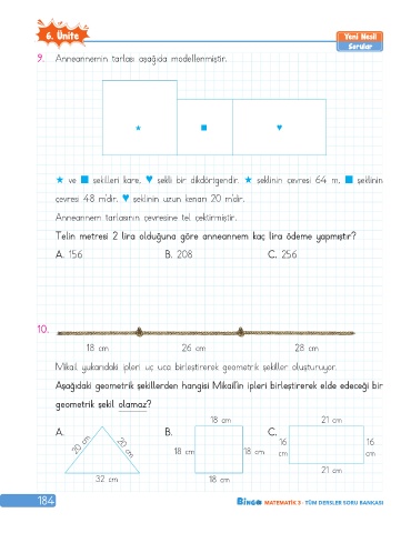 184 MATEMATİK 3 · TÜM DERSLER SORU BANKASI