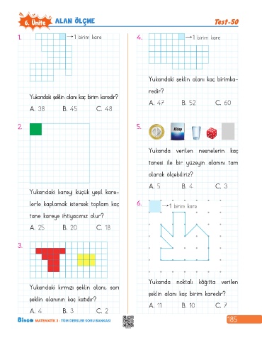 lerle kaplamak istersek toplam kaç 6. 1 birim kare