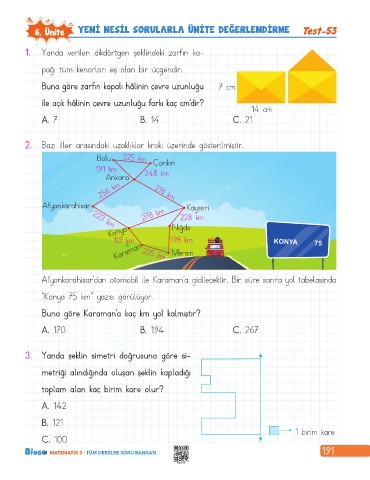 1. Yanda verilen dikdörtgen şeklindeki zarfın ka-