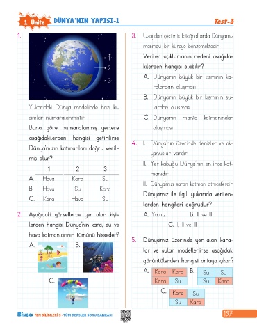 1. Ünite DÜNYA’NIN YAPISI-1 Test-3
