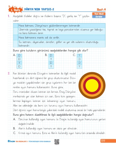 1. Ünite DÜNYA’NIN YAPISI-2 Test-4