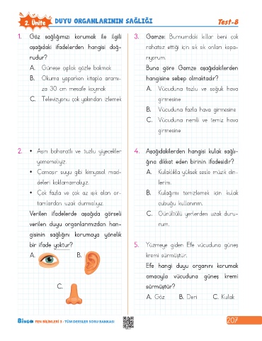 2. Ünite ? DUYU ORGANLARININ SAĞLIĞI T est -8