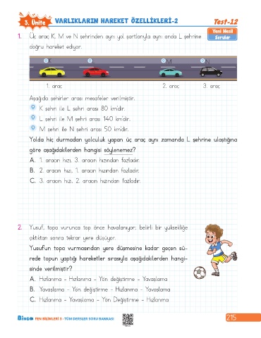 1. Üç araç K, M ve N şehrinden aynı yol şartlarıyla aynı anda L şehrine Sorular