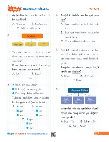 4. Ünite MADDENİN HÂLLERİ Test-19