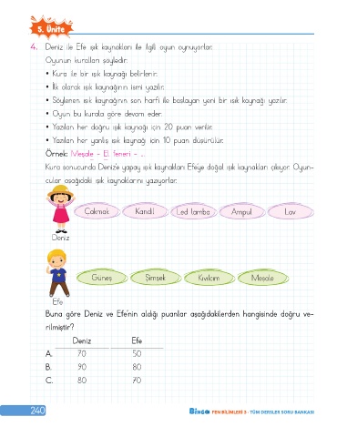 Kura sonucunda Deniz’e yapay ışık kaynakları Efe’ye doğal ışık kaynakları çıkıyor. Oyun-