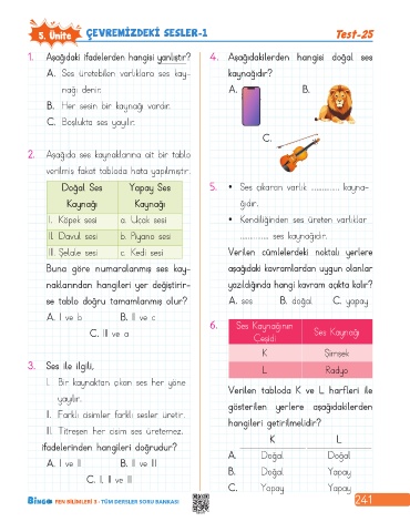 5. Ünite ÇEVREMIZDEKI SESLER-1 Test-25