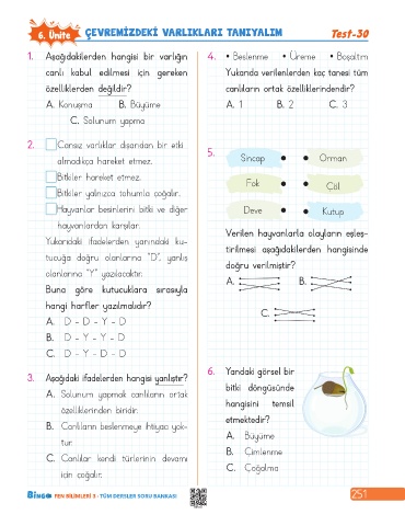 6. Ünite ÇEVREMIZDEKI VARLIKLARI TANIYALIM Test-30