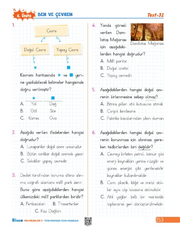 6. Ünite ? BEN VE ÇEVREM Test