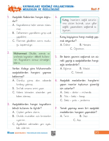 1. Ünite MESLEKLER VE ÖZELLIKLERI Test-4