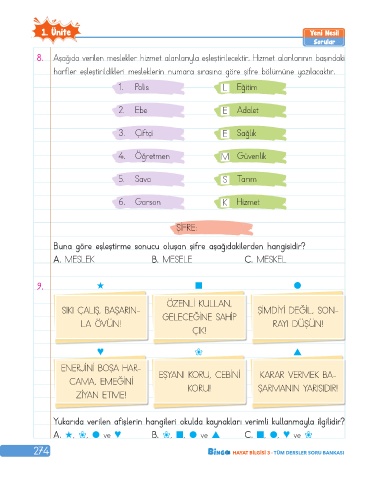274 HAYAT BİLGİSİ 3 · TÜM DERSLER SORU BANKASI