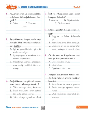 1. Ünite 1. ÜNITE DEĞERLENDIRMESI Test-5