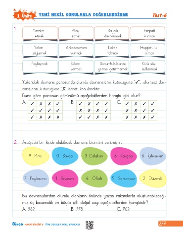 1. Ünite YENI NESIL SORULARLA DEĞERLENDIRME Test-6