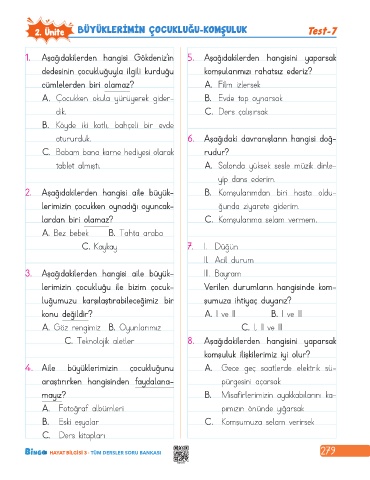 2. Ünite BÜYÜKLERIMIN ÇOCUKLUĞU-KOMŞULUK Test-7