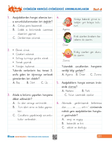 2. Ünite EVIMIZIN KROKISI-EVIMIZDEKI SORUMLULUKLARIM Test-8