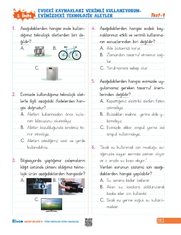 2. Ünite EVIMIZDEKI TEKNOLOJIK ALETLER Test-9