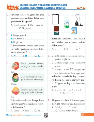 3. Ünite VERIMLI KULLANIMI-BILINÇLI TÜKETIM Test-13